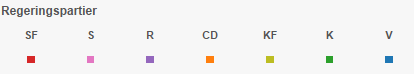 We can also see that the right wing governments of the 1980's had several consecutive short terms in office and repeatedly called general elections. This was done to resolve political issues that had become stuck in Parliament, where the government did not always command a majority. Some of the small political center parties (KF, CD, R) are seen participating in both left and right wing led governments in the 1980's and 1990's, some of them actually later leaving the political arena altogether (CD, KF).
